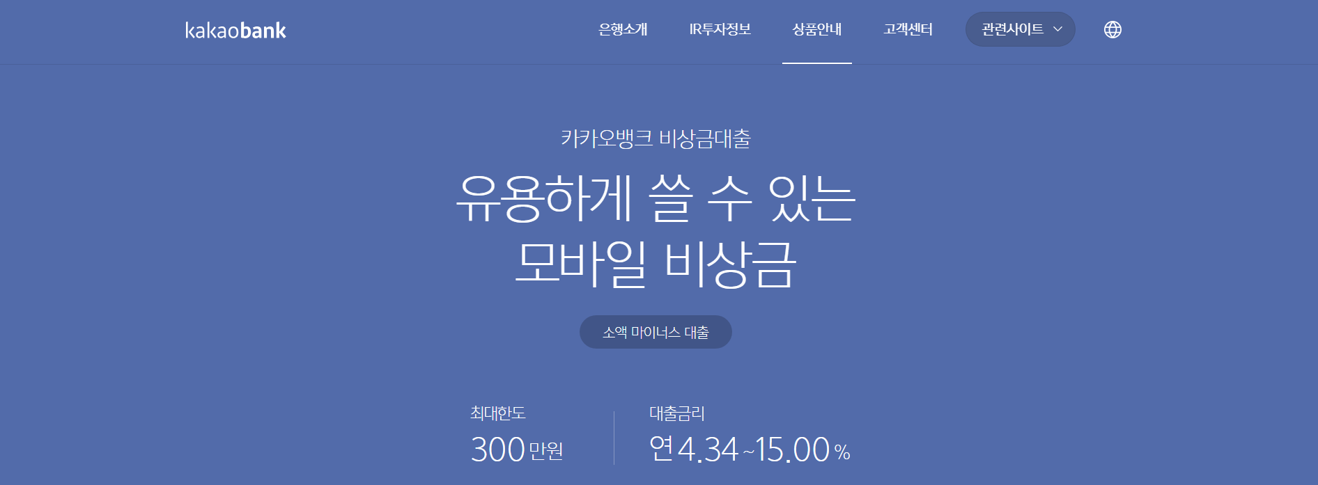 카카오뱅크 비상금대출은 최대 300만 원 한도로 운영되는 소액 마이너스 통장입니다.