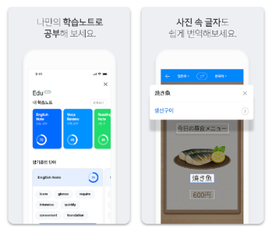 - 에듀 기능: 촬영한 지문과 단어를 활용한 학습 노트 제공