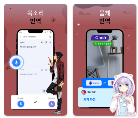 - AI 번역기: 다양한 언어를 정확하게 번역, 오디오 및 텍스트 지원