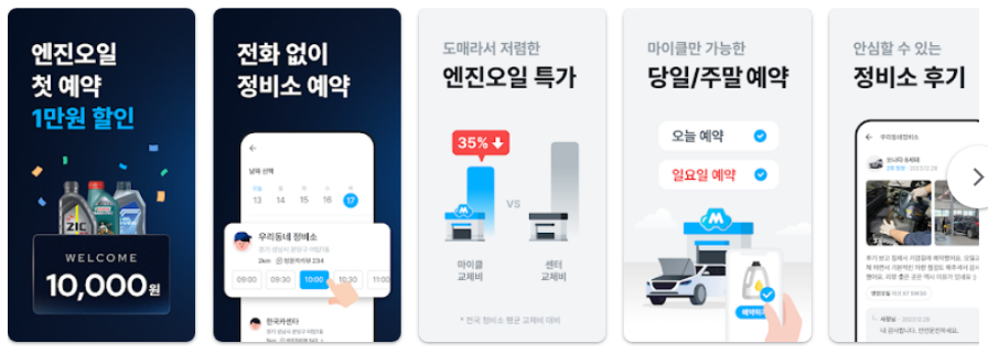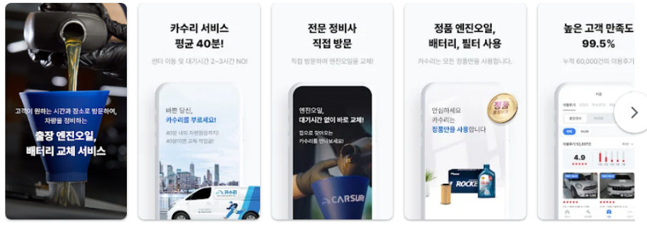 일부 어플은 타이어 교체, 엔진오일 교환, 배터리 교체 등 다양한 차량 관리 서비스를 함께 제공하며, 비교 견적과 예약까지 한 번에 진행할 수 있습니다.
